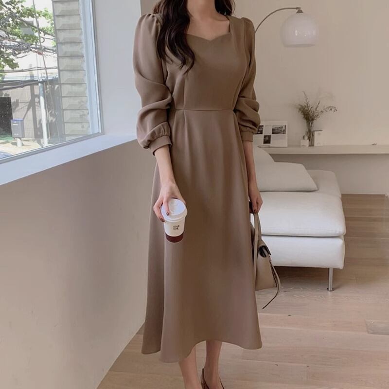 秋冬フレンチスカート スクエアネック ハイウエスト Aライン