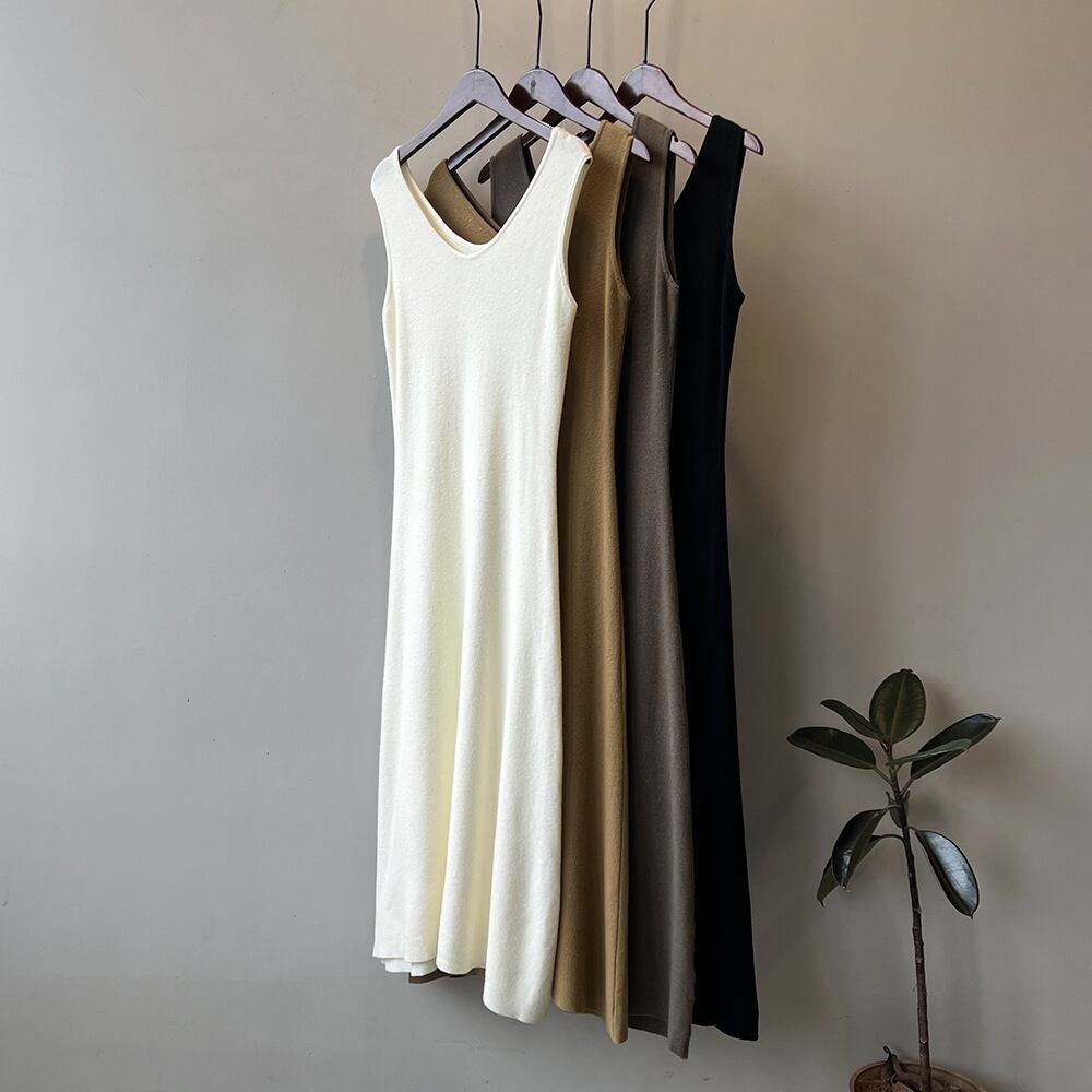 秋の新作、シンプルでスリムなデザインが魅力のニットベストです。