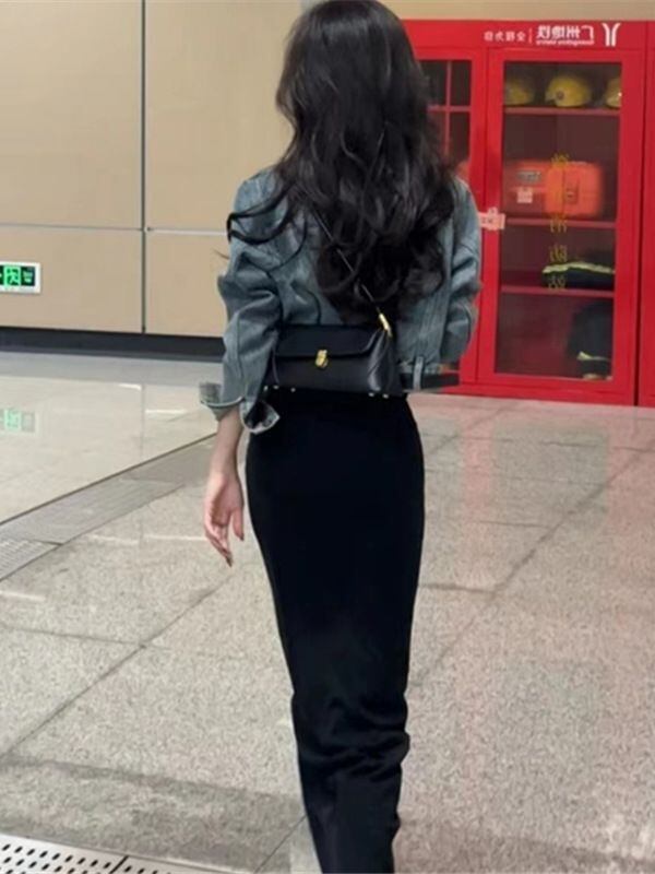 デニムジャケット ダメージ 春秋 ショート丈 着痩せ お出かけ カジュアル コーデ 着回し