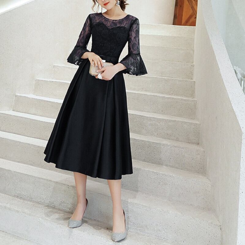 パーティードレス ワンピース レディース レース袖 袖あり 7分袖 結婚式 二次会 お呼ばれ パーティー セレモニー ブライダル お食事会 同窓会 女子会 ドレス ハイウエスト フォーマルワンピース 膝丈ワンピース シンプル 上品 エレガント きれいめ おしゃれ 安い ゆったり スリム 上質 カワイイ 高見え 色気 20代 30代 40代