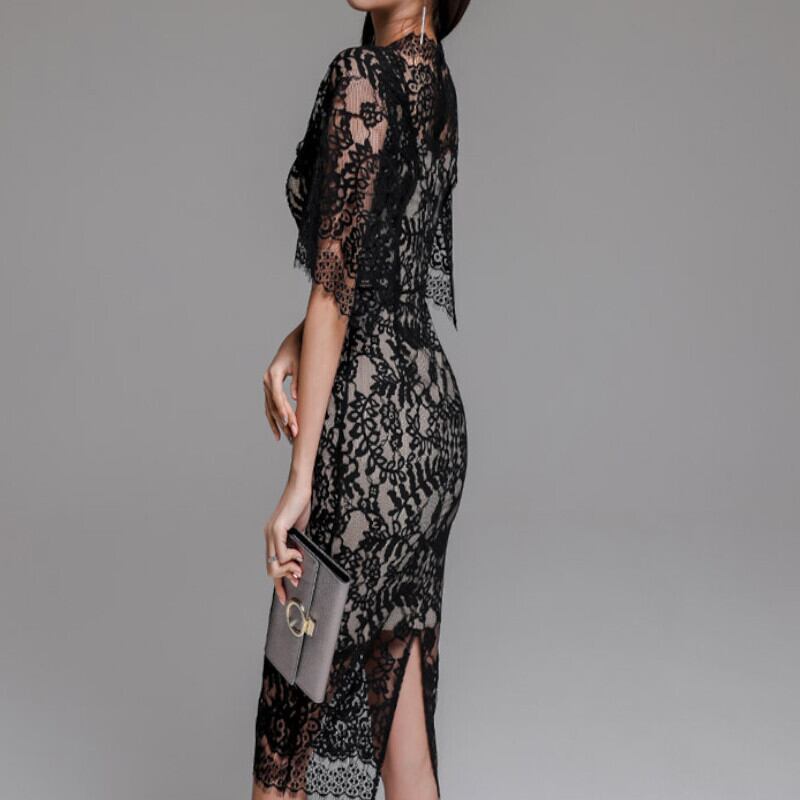パーティードレス ワンピース レディース シースルー 総レース 袖あり 7分袖 結婚式 二次会 お呼ばれ パーティー セレモニー ブライダル お食事会 同窓会 女子会 ドレス ハイウエスト ミディ丈 フォーマルワンピース 膝丈ワンピース シンプル 上品 エレガント きれいめ おしゃれ 安い ゆったり 上質 カワイイ 高見え 色気 20代 30代 40代