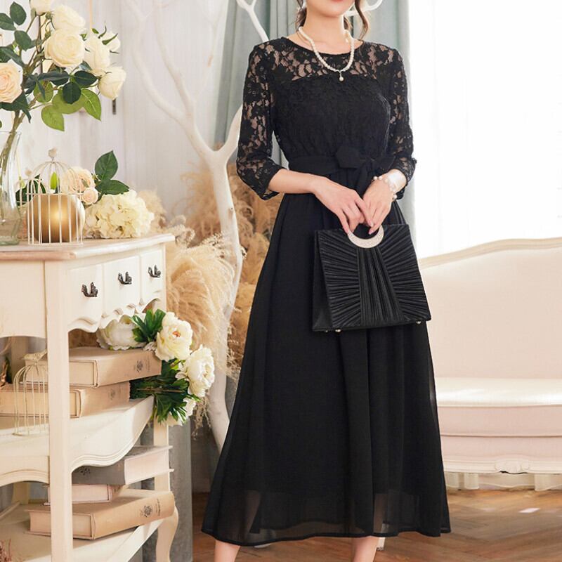 パーティードレス ワンピース レディース 袖あり 7分袖 結婚式 二次会 お呼ばれ パーティー セレモニー ブライダル お食事会 同窓会 女子会 ドレス ハイウエスト ロング フォーマルワンピース ロングドレス 膝丈ワンピース シンプル 上品 エレガント きれいめ おしゃれ 安い 上質 カワイイ 高見え 色気 20代 30代 40代