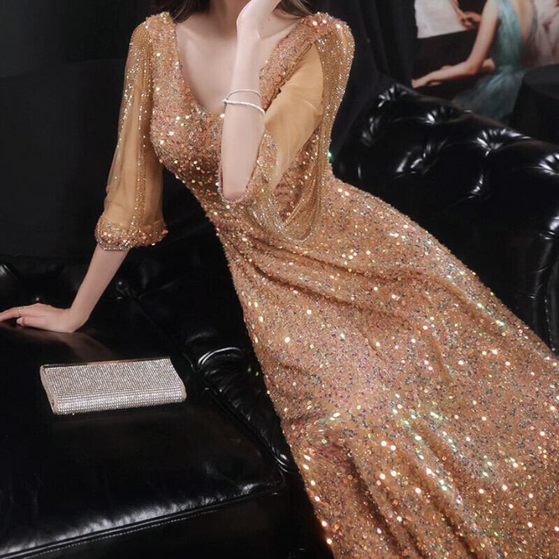 イブニングドレス パーティードレス ワンピース レディース 袖あり 4分袖 結婚式 二次会 お呼ばれ パーティー セレモニー ブライダル お食事会 同窓会 女子会 ドレス ハイウエスト ロング フォーマルワンピース ロングドレス マキシワンピース シンプル 上品 エレガント きれいめ おしゃれ 安い ゆったり スリム 上質 カワイイ 高見え 色気 20代 30代 40代